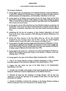 The resolution called on the European Foreign Ministers to form a common favourable approach at the UN and submit the issue of the Baltic States to the Decolonisation Subcommittee.